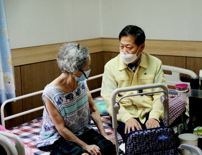 경기 수원시 권선구 사회복지협의회는 21일 지역내 어려운 저소득 노인 120가구에 여름을 시원하게 보낼 수 있도록 서큘레이터를 전달했다. 사진은 서경보 구청장(오른쪽)이 서둔동에 거주하는 홀몸노인 가구에 방문해 서큘레이터를 전달하고 대화를 나누고 있는 모습. (사진제공=권선구청)