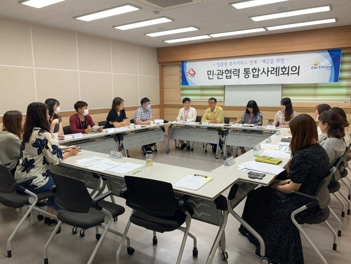 경기 동두천시 무한돌봄센터는 최근 시청 다목적실에서 민·관협력 통합사례회의를 개최했다. 이날 실무자들은 LH 임대주택 재계약 미이행으로 퇴거위기에 놓인 홀몸노인 가구 지원방안에 대해 논의했다. 사진은 회의가 진행 중인 모습. (사진제공=동두천시청)