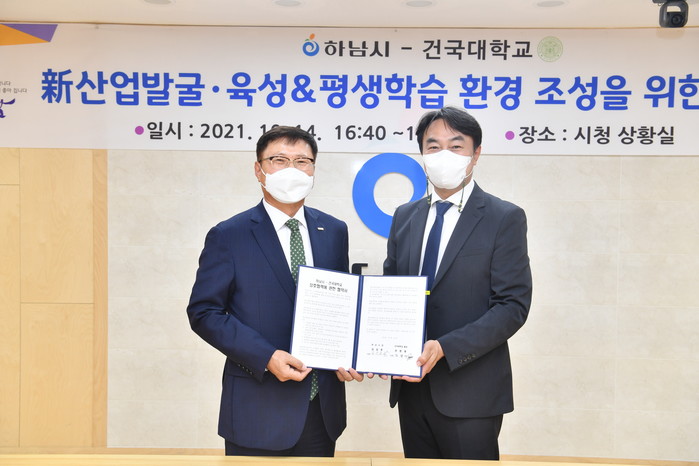 [하남=전용원 기자] 경기 하남시가 건국대학교와 신산업 발굴·육성 및 평생학습 환경 조성을 위한 업무협약을 했다고 15일 밝혔다.