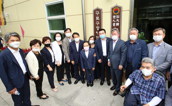 서울 구로구장애인체육회가 최근 출범을 알리는 개소식을 열었다. 체육회는 장애인 체육대회 개최 및 참가 지원 등의 다양한 활동을 할 예정이다. 사진은 구로구장애인체육회 개소식에서 이성 구청장(왼쪽에서 여섯 번째)과 관계자들이 기념촬영을 하는 모습. (사진제공=구로구청)