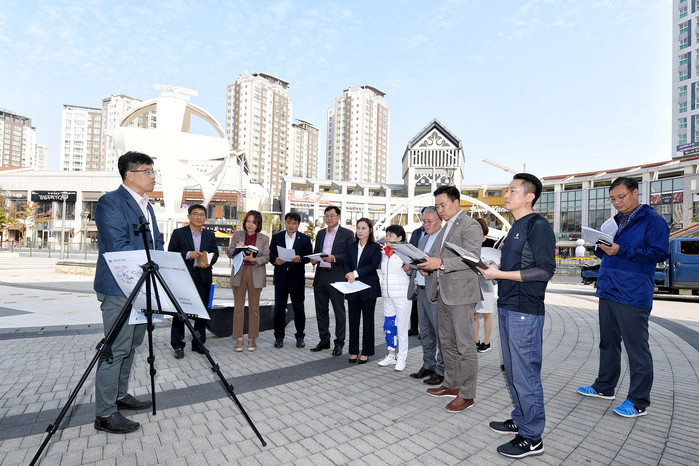 이어 일행은 현장점검에 나서 수질개선 현장과 LED 경관조명 설치 상황 등을 점검하고, 라베니체 수변상가 인근에서 진행되고 있는 특화거리 재정비 사업 현장을 집행기관 관계자들과 함께 둘러보며 시민들의 안전한 통행환경 조성을 당부했다.