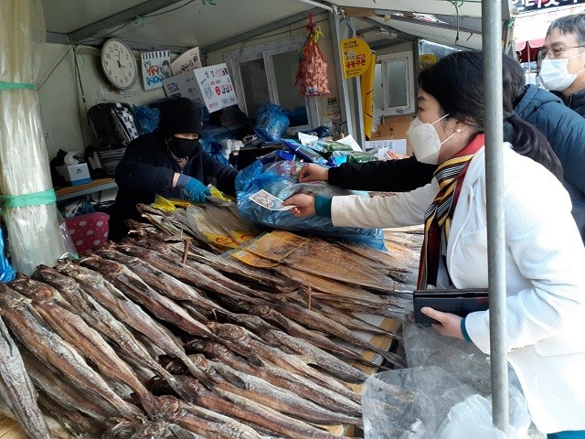 | ▲ 광주환경공단 임직원들과 전통시장 장보기에 함께한 임미란 시의원 / 광주환경공단 제공 |