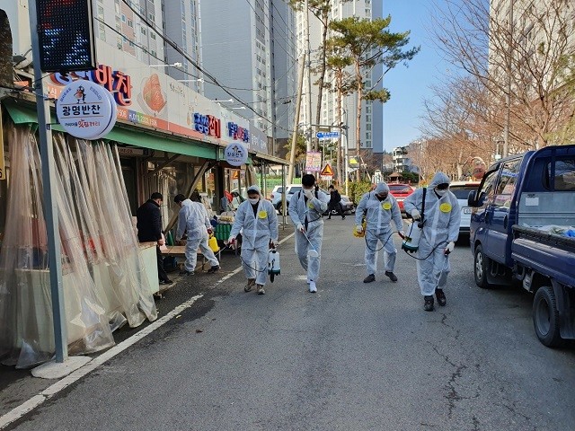 이들은 사전에 전통시장 상인회와 협의해 방역 구역을 확정하고 방진복, 마스크, 살균 소독제 등 방역용품을 철저하게 준비해 시장 내부 통행로를 비롯한 시장 곳곳에 방역을 실시했다.