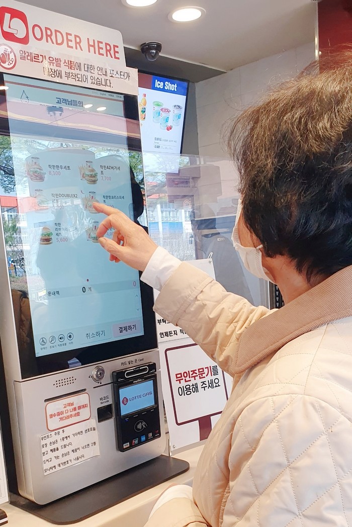 그 첫 번째 과정을 수료하고 마지막 현장 체험 학습에 나선 어르신들이 햄버거 가게의 키오스크(무인 주문기) 앞에서 상기된 얼굴로 서있다.