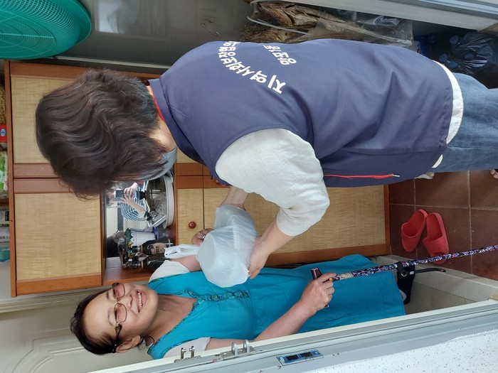 경기 수원시 영통구 망포1동 지역사회보장협의체가 27일 지역내 홀로 거주하고 있는 저소득 1인 가구 42가구에 삼계탕을 후원하며 안부를 확인했다. 사진은 이날 대상 가구에 삼계탕을 전달하고 있는 모습. (사진제공=수원시청)
