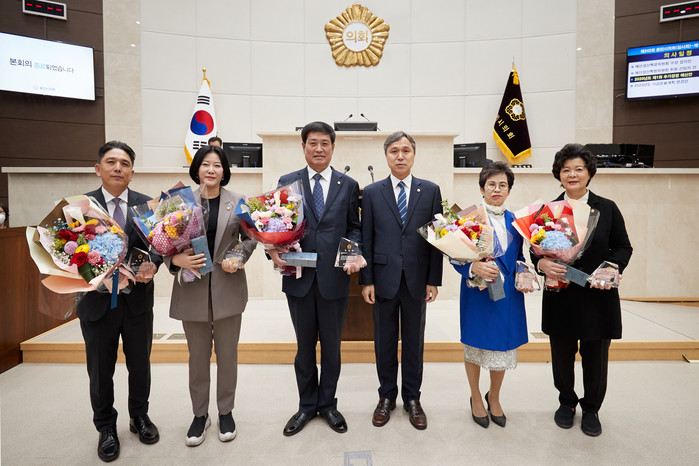 이날 전달식에서는 이건한 의장이 박문석 경기도 시·군의회의장협의회장을 대신해 박만섭, 박남숙, 박원동, 김희영, 이창식 의원에게 시상을 했다.