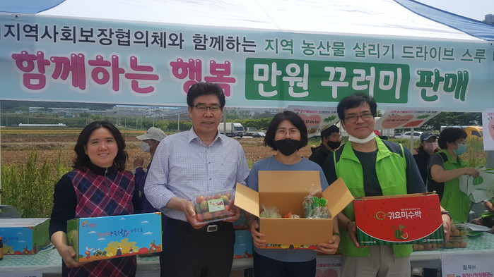 밀양시지역사회보장협의체(민간위원장 손성근)가 코로나19에 따른 사회적 거리두기, 개학 연기 등으로 판로에 어려움을 겪고 있는 지역농가를 돕기 위해 지난 16일 위양지 방면 도로변에서 지역농산물 살리기 드라이브 스루 마켓을 운영했다.