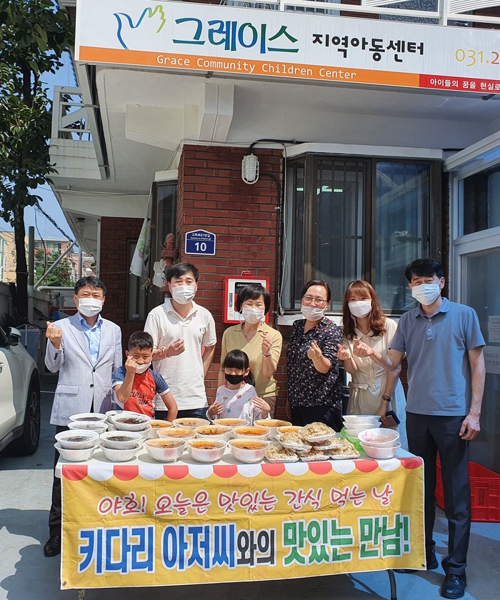 경기 수원시 팔달구 고등동 지역사회보장협의체는 19일 그레이스 지역아동센터를 방문해 ‘키다리 아저씨와의 맛있는 만남’을 실시했다. 이날 고등동 주민자치위원회 여가상 위원이 운영하는 고등반점에서 자장면을 후원했다. 사진은 관계자들이 기념촬영을 하는 모습. (사진제공=팔달구청)