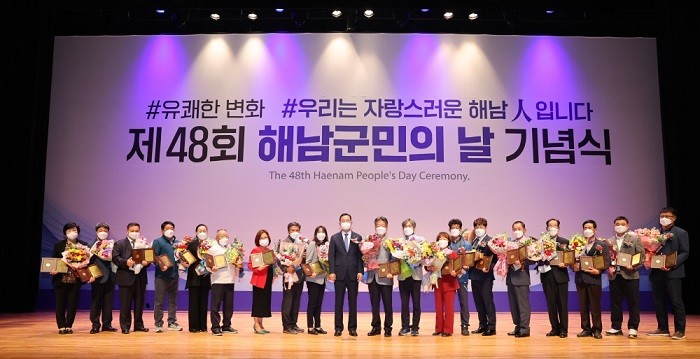 명현관 해남군수는 기념사를 통해 “일년 넘게 지속된 코로나 위기 속에서도 우리 해남은 대한민국 청정 일번지 땅끝해남의 위상을 지켜오고 있다”며 "뜻깊은 군민의 날을 맞아 군민과 함께 ‘다시 뛰는 해남, 빛나라 땅끝’을 기필코 이뤄 내 해남이 다시 한 번 전남의 중심 군으로 우뚝 서는 계기를 만들겠다."고 밝혔다.