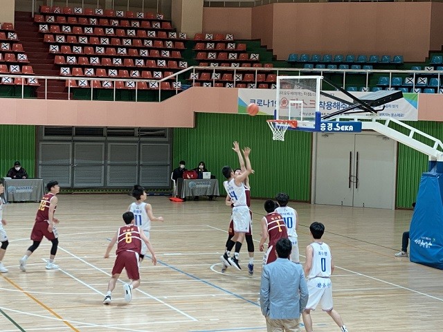| ▲ 해남군 우슬실내체육관에서 지난 3월 30일부터 이달10일까지 12일간 개최된 제58회 춘계전국남ㆍ녀중고농구연맹전 경기 모습 / 사진=해남군 제공 |