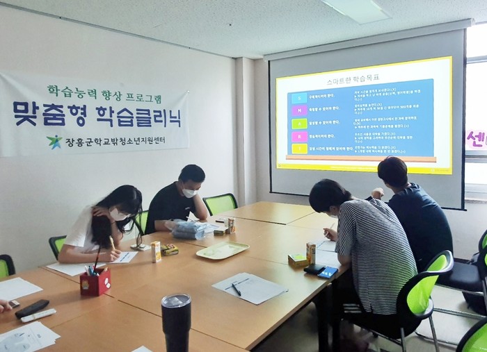 전남 장흥군학교밖청소년지원센터는 장흥군의 지원을 받아 최근 이틀에 걸쳐 학업 복귀를 지원하고 학습 능력을 향상시키기 위한 프로그램 ‘학습클리닉’과 사회 진입을 위한 자립 동기 강화 및 자립 준비 수준을 향상시키기 위한 프로그램인 ‘두드림’을 운영했다. 사진은 학습클리닉 프로그램이 진행되고 있는 모습. (사진제공=장흥군청)