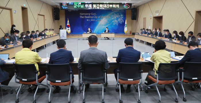 함양군은 5월 3일 오전 서춘수 군수 주재로 간부회의를 개최하고 각 부서별 추진할 중요 현안사업에 대해 보고하고 원활한 사업 추진을 위한 각 부서의 협조를 이끌어 냈다.