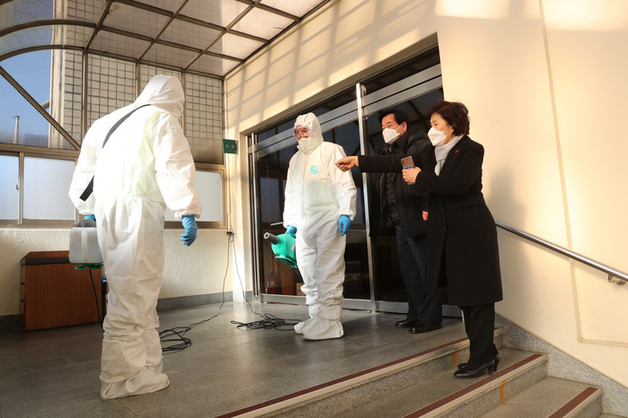 [시민일보 = 이대우 기자]유양순 서울 종로구의장과 여봉무 건설복지위원장이 최근 지역내 한 성당을 방문해 코로나19(우한폐렴) 확산 방지를 위해 방역작업에 최선을 다하고 있는 보건소 직원을 격려하고 꼼꼼한 방역을 당부했다.