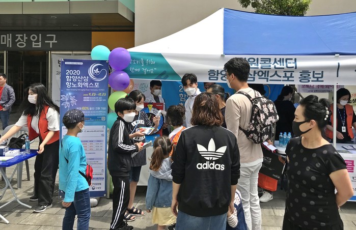 이날 홍보활동은 재김해함양군향우회(회장 정병호)와 김해시 소상공인연합회(회장 양대복)의 도움으로 홍보부스를 배정받고 행사장을 찾는 방문객들에게 엑스포 리플릿과 홍보물을 배부하였다.