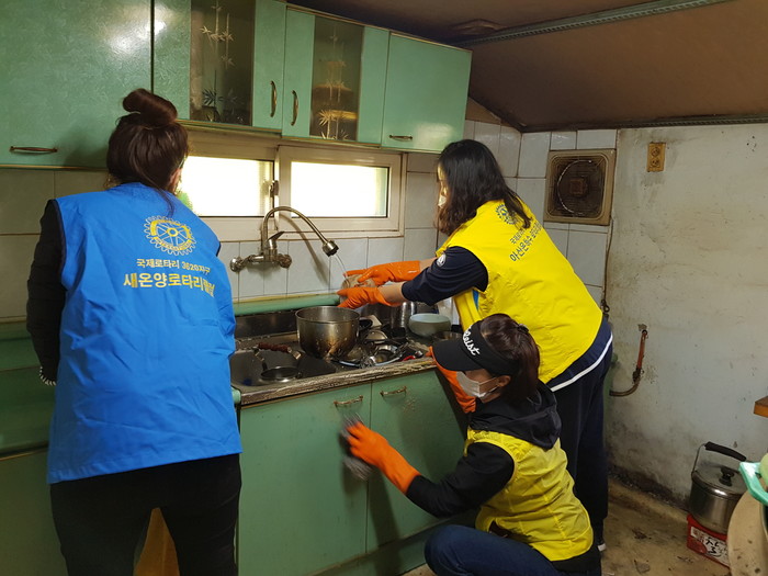 충남 아산시와 새온양로타리클럽, 은하수로타리클럽이 최근 지역사회복지 증진을 위해 복지사각지대 가구를 대상으로 주거환경 개선사업을 실시했다. 사진은 봉사자들이 취약계층 가구의 보일러·도배·장판 교체, 대청소 등 주거환경 개선 작업을 하고 있는 모습. (사진제공=아산시청)