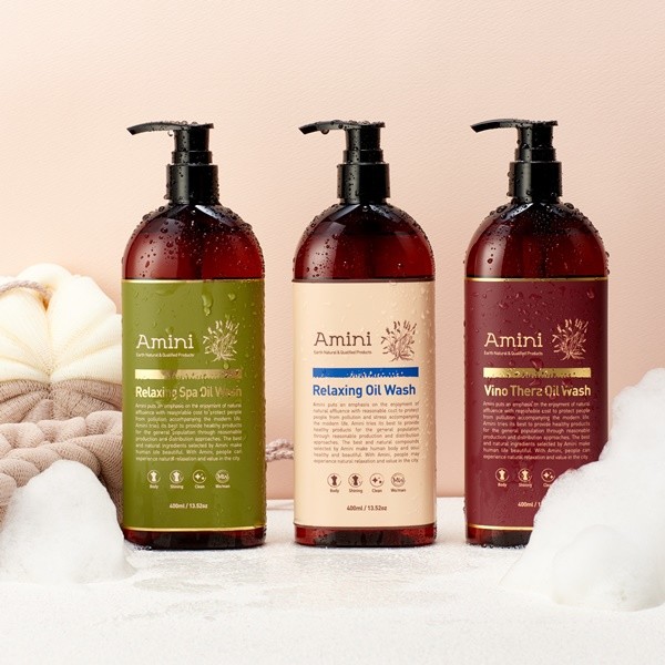 자연주의, 프리미엄 홈스파 브랜드 아미니 (Amini)가 오일 바디워시 시리즈 ‘릴렉싱오일워시’, ‘비노테라오일워시’, ‘릴렉싱스파오일워시’ 3종을 대용량 400ml로 새롭게 출시했다.