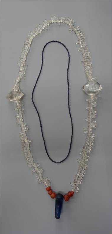 ‘김해 양동리 270호분 출토 수정목걸이’는 굽은 옥모양, 주판알모양, 육각다면체모양 등 다양한 형태의 수정 146점으로만 이뤄진 특이한 유물이며 ‘양동리 322호분 출토 목걸이’는 수정과 마노(瑪瑙, 수정과 같은 석영광물로 원석의 모양이 말의 머릿골을 닮아서 지칭), 유리 등 총 574점으로 만들어졌다.