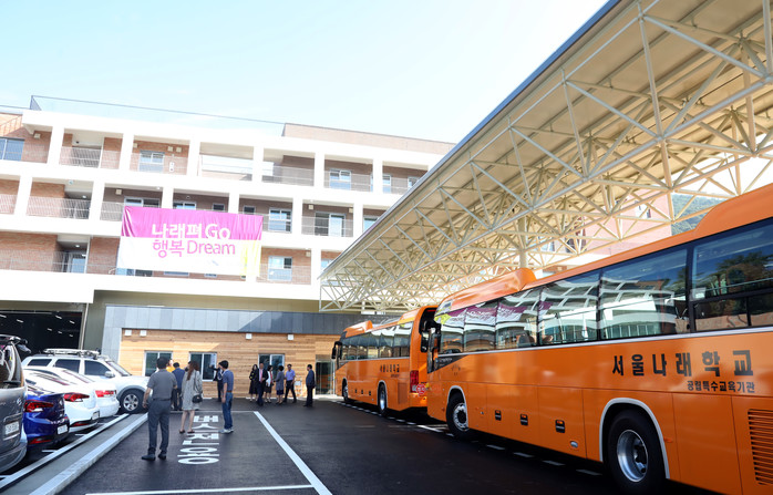 2일 오전 서울서 17년 만에 문 연 공립특수학교인 서울 서초구 서울나래학교로 학생들이 등교하고 있다.