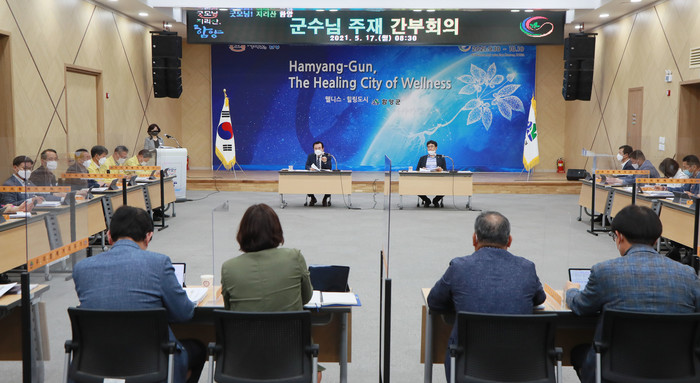함양군은 5월 17일 오전 서춘수 군수 주재로 간부회의를 개최하고 각 부서별 추진할 중요 현안사업에 대해 보고하고 원활한 사업 추진을 위한 각 부서의 협조를 이끌어 냈다.