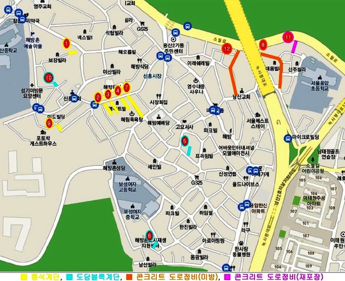 | ▲ 해방촌 골목길 보행환경 개선 공사 위치도. (사진제공=용산구청) |