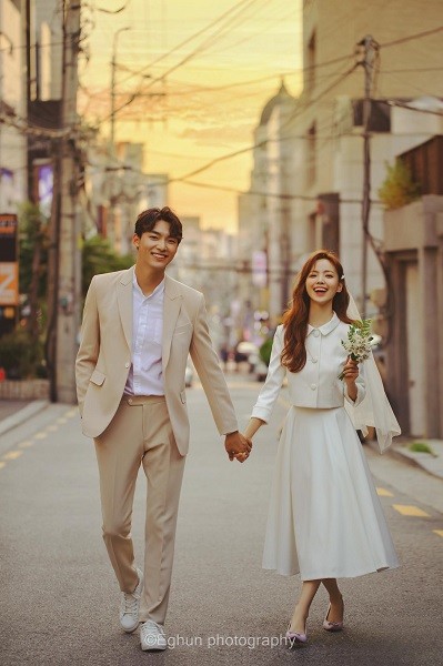 스튜디오 촬영 60 패키지는 60만원대로 11x14=20P 앨범 1권과 서비스액자 20R 1개, 촬영 드레스 2벌, 미니드레스 1벌, 신랑 턱시도로 구성되어 있다.
