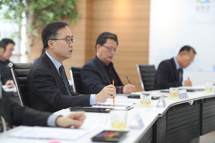 금천구가 13일 ‘주요 현안업무 점검 보고회’를 개최하고 2020년 ‘동네방네 행복도시 금천’ 시즌2의 본격적인 시작을 알렸다. 사진은 보고회에서 유성훈 구청장이 구청 간부들에게 올해 구정 중점추진 과제에 대해 이야기하고 있는 모습. (사진제공=금천구청)