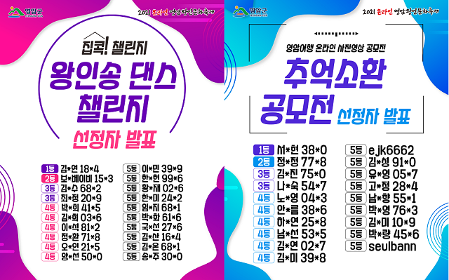 | ▲ 영암군 2021년 왕인문화축제 집콕 챌린지 이벤트 선정자 발표 이미지 / 영암군 제공 |