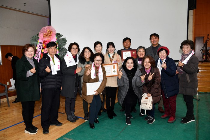 1일 경기 하남시 신장초등학교 석바대 체육관에서 자원봉사자 800여명이 참석한 가운데 ‘2019년 자원봉사축제’가 개최됐다. 이날 행사에서 자원봉사자 표창장 수여 등을 했다. 사진은 김상호 시장과 봉사자들이 기념촬영을 하는 모습. (사진제공=하남시청)