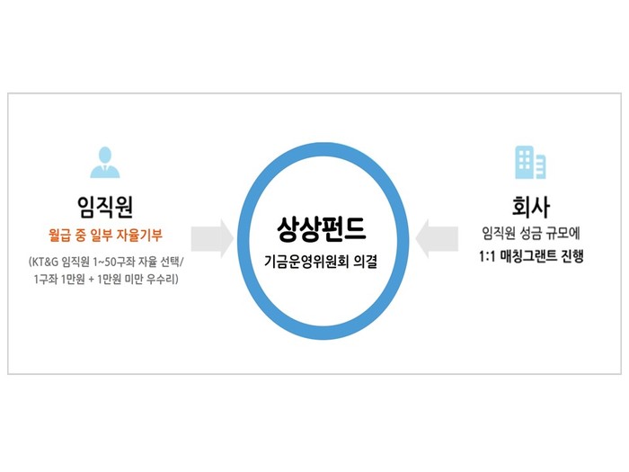 2011년 출범한 상상펀드는 KT&G만의 독창적 사회공헌기금으로, 임직원들이 매월 급여의 일정 금액을 자발적으로 기부하면 회사가 동일한 금액을 더하는 '매칭 그랜트(Matching Grant)' 형태로 이뤄지고 있다.