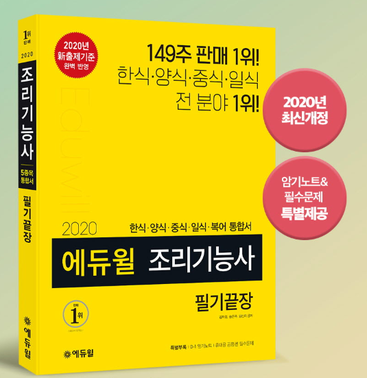 [시민일보 = 여영준 기자] 종합교육기업 에듀윌(대표 박명규)이 발간한 ‘2020 에듀윌 조리기능사 필기끝장’ 교재가 베스트셀러 1위를 기록했다.