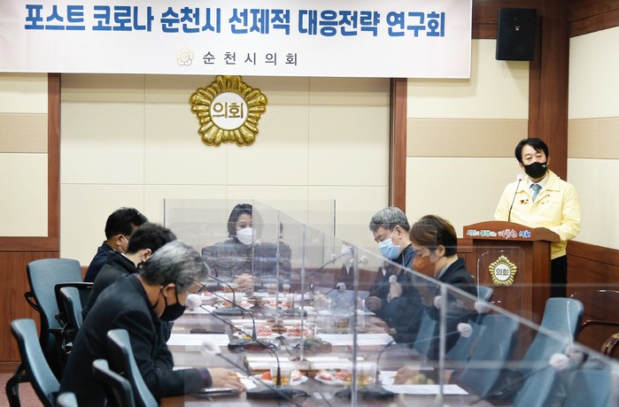 [순천=한행택 기자] 전남 순천시의회 ‘포스트 코로나 순천시 선제적 대응전략 연구회(이하 포스트 코로나 연구회)’가 시의회 소회의실에서 지역경제 위기 극복을 주제로 제5차 회의를 개최했다.