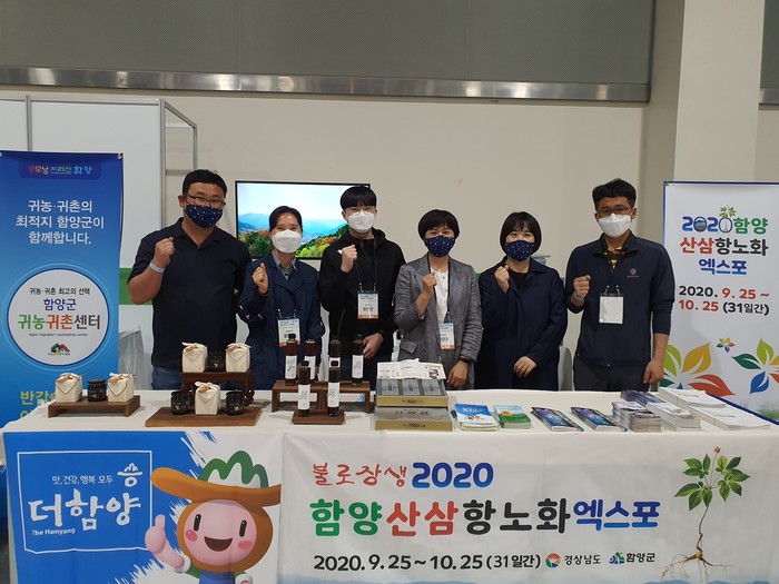 이 행사에서 함양군은 귀농인과 공무원이 참가하여 농특산물 판매 및 군 홍보 부스 2개동 운영과 함께 함양군의 귀농귀촌 지원시책과 2020함양산삼항노화엑스포, 문화관광 홍보 책자, 지역 문화·관광 축제 등 함양을 알리는 홍보물 1,000부를 배부하였다.