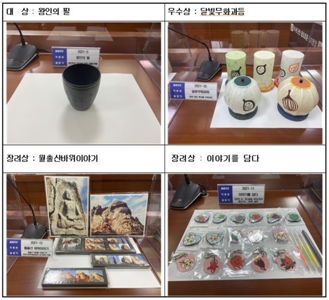 이번 공모는 출품된 공예품, 팬시용품 등 총 15개 작품을 대상으로 상품성, 작품성, 상징성 등을 지난 7일 심사해 대상, 우수상 각 1개, 장려상 2개 총 4개 작품을 선정했다.