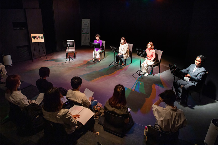 최근 경북 구미시 소극장 공터다에서 시민 40여명이 참여한 가운데 희곡읽기를 통해 인문학을 더욱 가까이 할 수 있도록 한 인문체험 프로그램 '인문학, 연극과 만나다'의 마지막 일정으로 입체낭독극 공연이 열렸다. 사진은 공연이 진행되는 모습. (사진제공=구미시청)