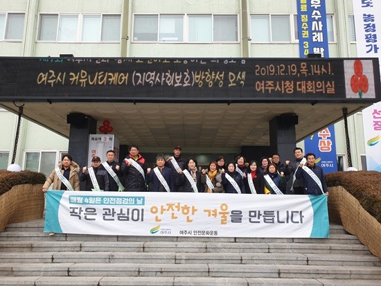 경기 여주시는 10일 시청 상황실 및 시청 인근에서 '제285차 안전점검의 날 캠페인'을 전개했다. 이날 캠페인에 시 직원, 어머니폴리스, 안전보안관, 자율방재단, 안전지킴이 봉사단 등 40여명이 참여했다. 사진은 기념촬영을 하는 모습. (사진제공=여주시청)