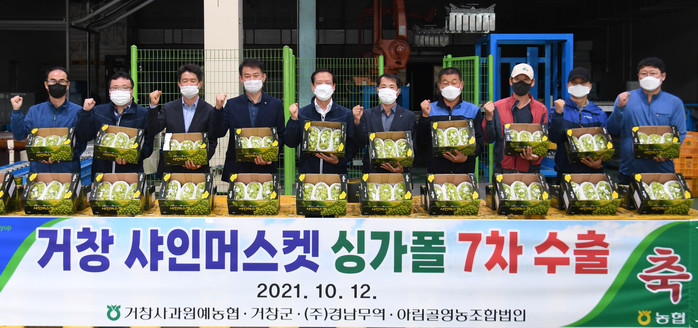 거창사과원예농협은 아림골영농조합법인에서 생산한 샤인머스캣을 ㈜경남무역을 통해 수출하고 있으며, 올해는 지난 9월 16일 수출을 시작으로 7번에 걸쳐 싱가포르로 약 2톤가량 수출을 달성했다.
