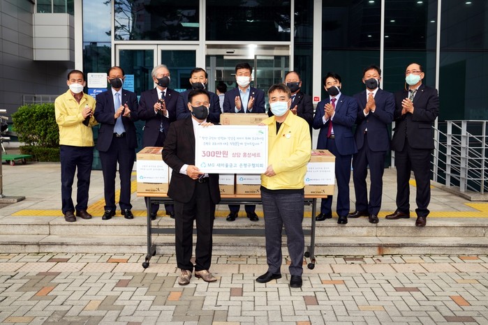 서울 은평구는 최근 새마을금고 은평구협의회로부터 코로나19 대응으로 고생하는 보건소 직원을 위한 300만원 상당의 홍삼세트를 전달받았다. 사진은 전달식에서 관계자들이 기념촬영을 하는 모습. (사진제공=은평구청)