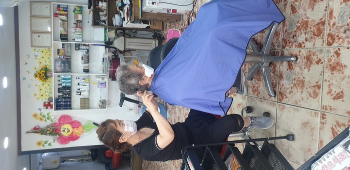 경기 양주시 은현면지역사회보장협의체는 이달부터 지역내 저소득 노인 50명을 대상으로 이·미용서비스 비용을 제공하는 ‘머리하는 날’ 사업을 운영하고 있다. 사진은 최근 한 대상 노인이 협약 미용실에서 이·미용서비스를 받고 있는 모습. (사진제공=양주시청)