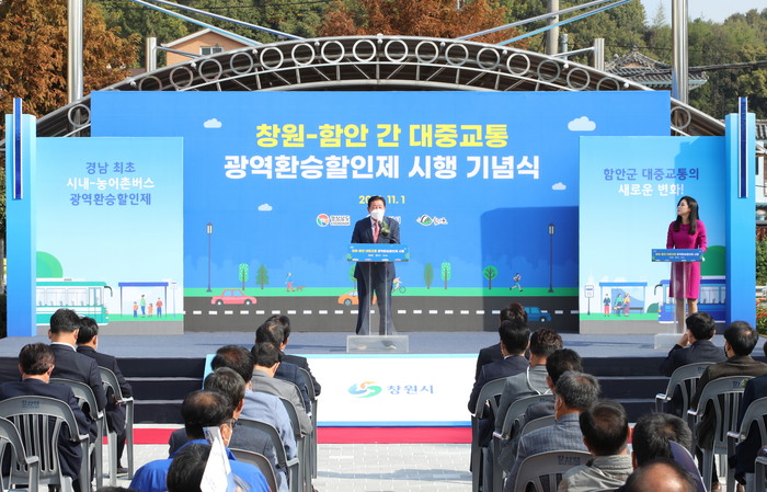 함안군은 지난 1일 오전 10시 30분 칠원읍 소재 종합사회복지관에서 함안-창원 간 대중교통 광역환승할인제 시행 기념식을 개최했다고 밝혔다.