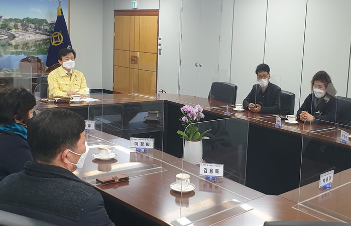 [진주=최성일 기자] 조규일 진주시장은 지난 19일 오후 2시30분 시청 기업인의 방에서 무료경로식당 운영 민간단체 관계자와 간담회를 가졌다.