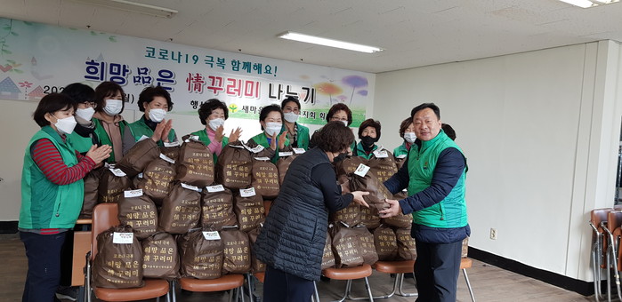 새마을운동은평구지회가 코로나19 장기화로 생활에 어려움을 겪고 있는 서울 은평구 지역의 어려운 이웃들을 위해 라면, 햇반, 통조림 등의 생필품이 담겨 있는 ‘희망품(品)은 정(情)꾸러미’ 80개를 전달했다. 사진은 꾸러미를 전달하고 있는 관계자의 모습. (사진제공=은평구청)