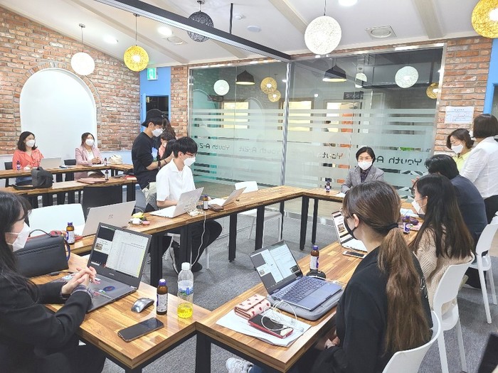 최근 은평구가 코로나19로 한차례 미뤄진 ‘제7회 은평대전’ 대학생 멘토 오리엔테이션을 온라인 원격 시스템(ZOOM)을 활용해 진행했다. 이번 은평대전에는 230명이 참여했다. 사진은 오리엔테이션을 준비하고 있는 김미경 구청장과 대학생 멘토들의 모습. (사진제공=은평구청)