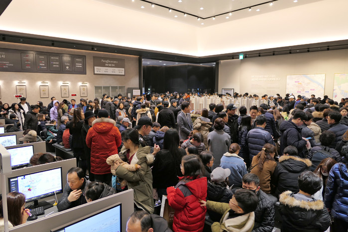 견본주택 밖에는 대기행렬이 500여m 이상 길어지며 입장을 위해서 1시간 이상을 기다려야 했다.