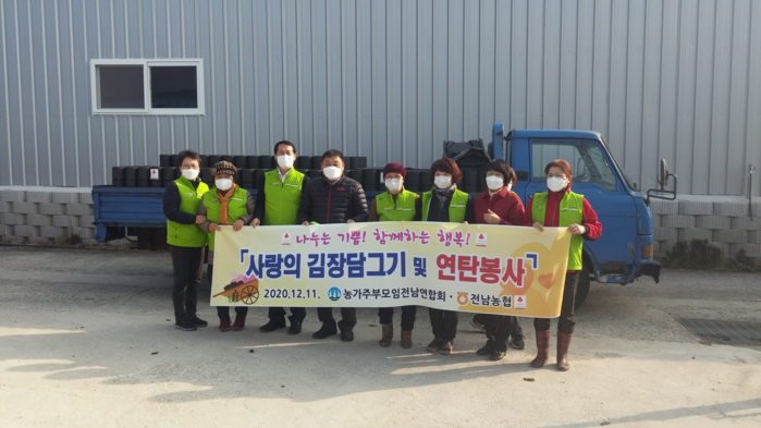 [함평=황승순 기자]농가주부모임전남연합회(회장 박민숙)는 지난 11일 함평군 대동면을 찾아 지역취약계층을 위한 사랑의 연탄‧김장김치 나눔 행사를 실시했다.
