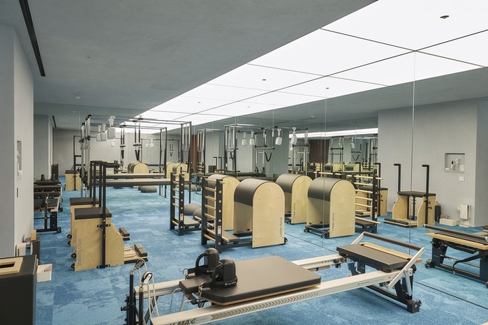 모든 클래스 룸에는 캐나다 프리미엄 브랜드 메리튜(Merrithew™)의 스탓 필라테스(STOTT PILATES®) 리포머, 캐딜락, 체어, 배럴, 스프링보드 5종의 필라테스 기구를 완비했다.
