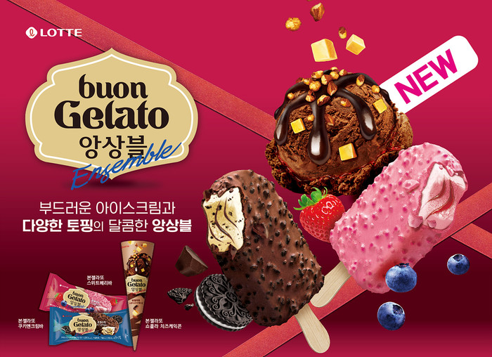 롯데제과에 따르면 이번 신제품은 ‘본젤라또 앙상블’이라는 새로운 브랜드로 론칭, 기존의 ‘본젤라또’ 제품보다 유지방 함량을 2배 가량 올려 부드러운 식감을 한층 끌어올린 상위 버전의 ‘본젤라또’다.