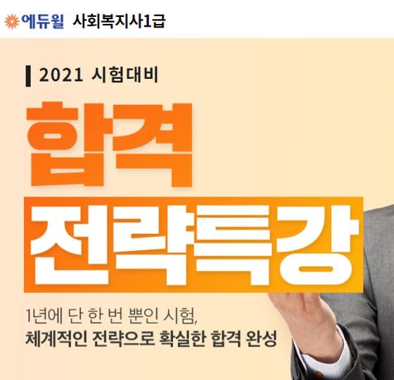 [시민일보 = 황혜빈 기자] 종합교육기업 에듀윌(대표 박명규)이 오는 2021년 사회복지사1급 시험에 앞서 체계적인 학습 전략을 세울 수 있도록 지원하는 '합격전략 특강'을 무료로 공개한다.