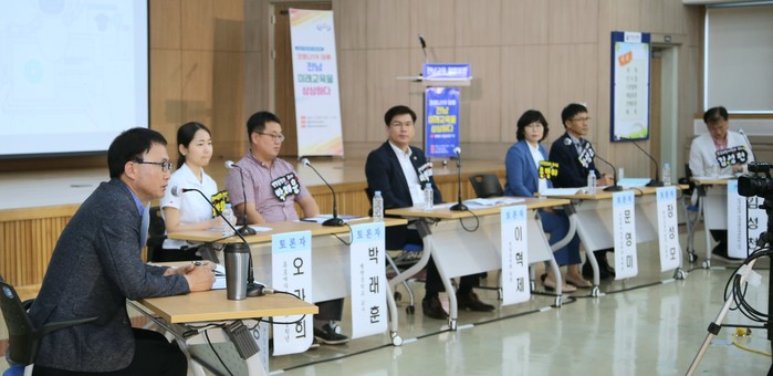 전남교육정책연구소는 23일 전라남도교육청 2층 대회의실에서 ‘코로나19 이후 전남 미래교육을 상상하다’라는 주제로 전남도교육청과 함께 ‘2020 전남교육 희망포럼’을 개최했다. 사진은 포럼에 참석한 토론자들이 열띤 토론을 벌이고 있는 모습. (사진제공=전남교육정책연구소)