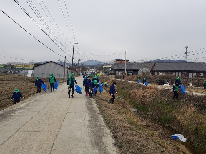 경기 이천시 모가면새마을협의회가 지난 17일 '깨끗한 우리 마을 만들기'의 일환으로 봄맞이 국토청결 환경정화 활동을 펼쳤다. 이날 회원 30여명은 진가리 가동천 주변에 적치된 쓰레기 등을 수거했다. 사진은 쓰레기를 줍고 있는 회원들의 모습. (사진제공=이천시청)