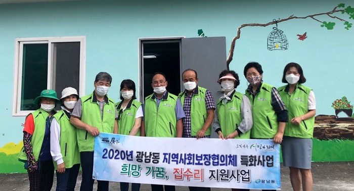 경기 광주시 광남동 지역사회보장협의체는 최근 주거환경이 열악한 가구를 대상으로 집수리 지원사업을 진행했다. 이번 봉사는 주거환경 개선이 시급한 기초생활수급자 가구에 적십자와 함께 사흘 동안 집수리 지원사업을 진행했다. 사진은 집수리에 참여한 관계자들이 기념촬영을 하는 모습. (사진제공=광주시청)